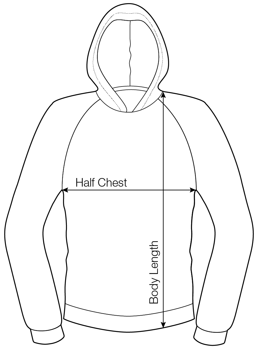 To find your size, measure a hoodie that fits you well from side seam to side seam and then select the corresponding size from the chart below: | ||||
